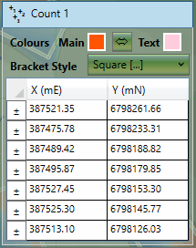 These are the points which define the positions of the items of the count element.