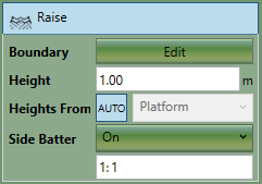 The Raise element is used to add a fixed thickness of material to an area of the site. This
