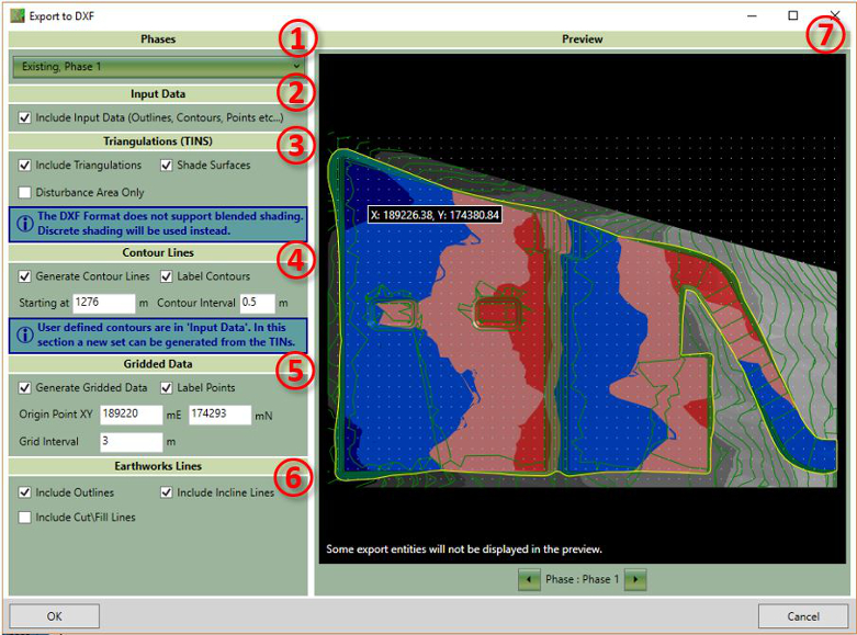 will include plan views of each phase you export, as well as colour keys, earthworks quantity summary tables and transects, if you have defined