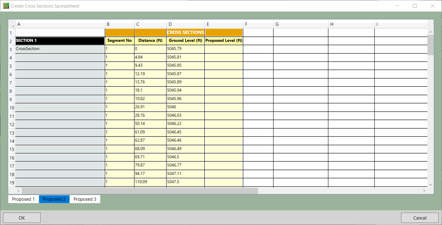 Cross Sections Spreadsheet