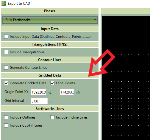 To do this, select the following options from File → Export → CAD Data screen to generate gridded points for integration into the BIM system. The image below shows which options to choose.