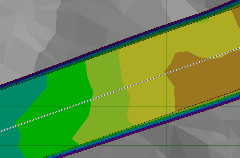 One powerful feature of Kubla Cubed is the ability to automatically generate side batters to slope between the design ground levels and the existing bathymetry. This is particularly important for coastal projects, where the batter angles can be quite low, and the volumes within these batters can represent a significant part of the total volumes. See Side Batters.