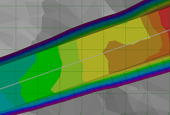 Since typical dredging projects are cut-only, as described above, the default shading scheme—which displays cut in varying shades of red, and fill in varying shades of blue—is not particularly appropriate. Commonly, dredging is displayed in a Rainbow shading scheme, which maximises the contrast in dredging depths. This is provided as a default shading scheme, but you can also customise as required.