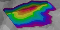 | Default red (cut) and blue (fill) shading | Preset shading scheme 'Rainbow' applied |