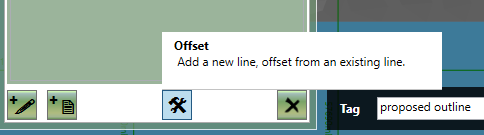 The Offset Tool is used to create a new line placed at a user-specified offset (relative distance and relative elevation) from the original line. Users are prompted to enter a point indicating which side of the original line the offset should be placed. While the elevation represents a relative adjustment along the Z-axis, the distance relates to adjustments within the XY plane. This functionality proves particularly beneficial for generating footpaths alongside roads. The tool extends its support to outlines, contours, and break-lines.